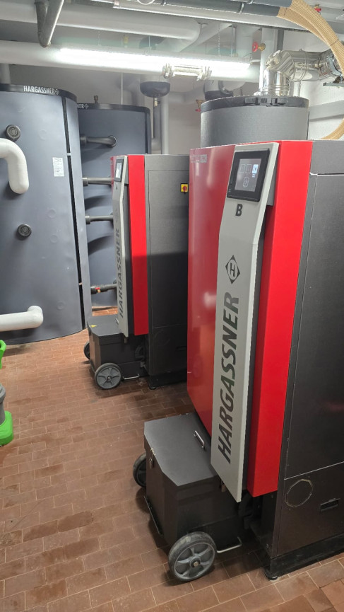 Anstelle des bestehendem Heizölkessels wurden 2 neue Pellets-Heizkessel Hargassner ECO PK 120 installiert, inklusive 2 Pufferspeicher je 1.500 Liter sowie 2 Frischwasserstationen für die Warmwasseraufbereitung.