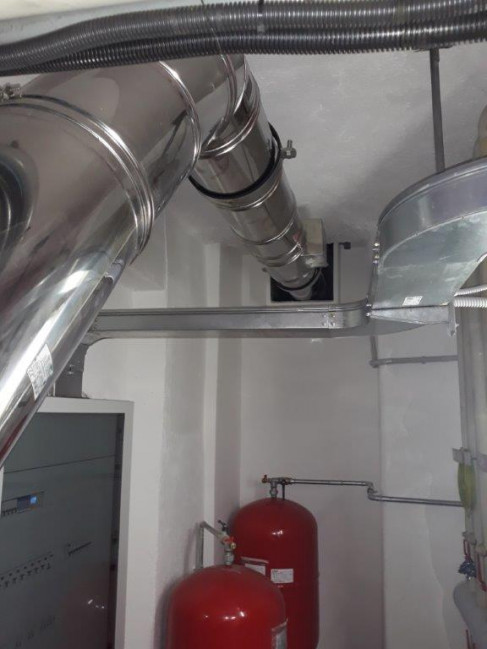 Per la nuova caldaia a gas condensazione è stata installata una nuova canna fumaria con camino nel cavedio esistente.